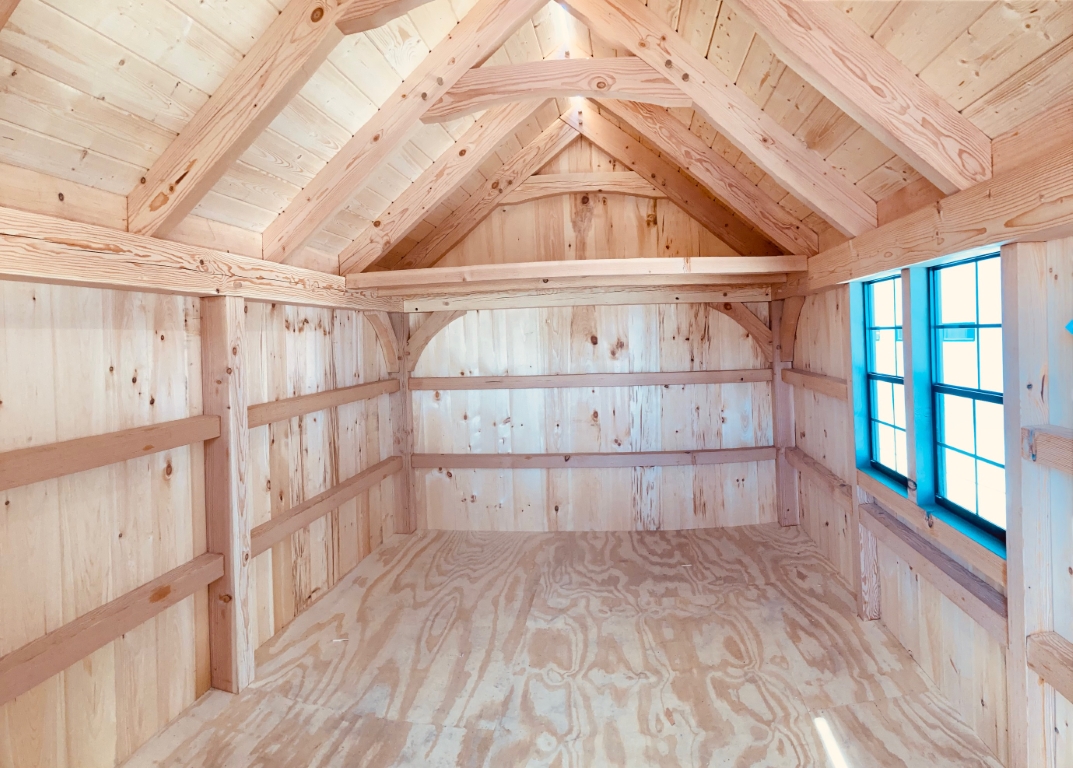 Our Timber Frame Sheds are customizable to your needs. The Carriage Shed offers True Timber Frame Construction on any building from a shed to a garage. Add the timeless beauty and majestic accents with a hybrid structure that has timber frame accents on a classically constructed shed. These buildings are quoted per customer and built to your needs. Contact us today to get your custom quote!